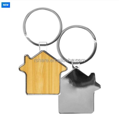 Portachiavi ecologico in bambù e metallo a forma di casa da 32mm per articoli da regalo promozionali